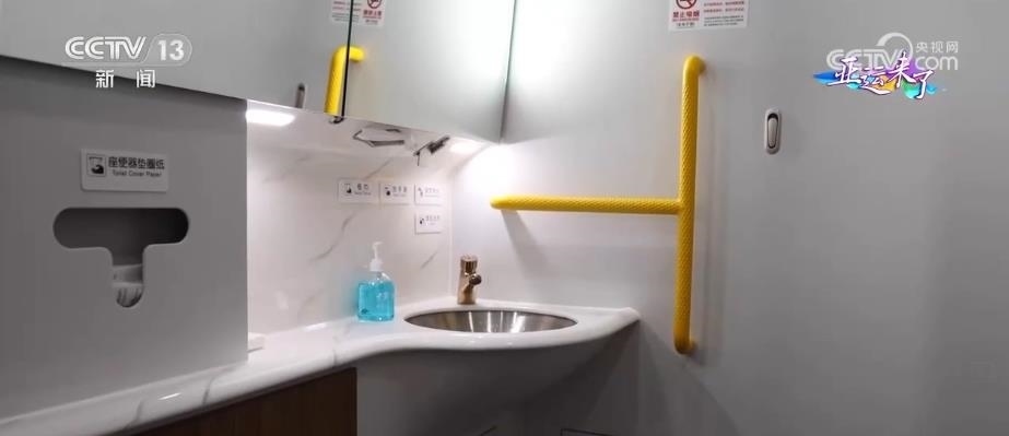 動車組的4號車廂為無障礙車廂,有無障礙衛(wèi)生間、輪椅存放區(qū),還有盲文標識以及相應(yīng)的設(shè)施設(shè)備,為乘客提供無障礙出行服務(wù)。
