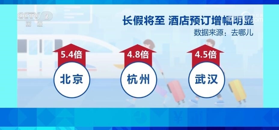 旅游預(yù)訂平臺數(shù)據(jù)顯示:截至9月15日,國內(nèi)熱門酒店預(yù)訂量同比2019年增長514%。其中,北京、杭州、武漢、上海、重慶、成都、長沙、西安、南京、廣州,“十一”假期的酒店預(yù)訂量同比2019年增長超3倍。其中,北京增幅達(dá)5.4倍,杭州、武漢增幅分別達(dá)到4.8倍、4.5倍。