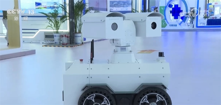 總臺(tái)央視記者 古峻嶺:我還發(fā)現(xiàn)了一個(gè)非常乖巧、靈活的機(jī)器狗,背上還馱著一個(gè)奇怪的裝置,它是干什么的?我們來(lái)請(qǐng)教一下。
