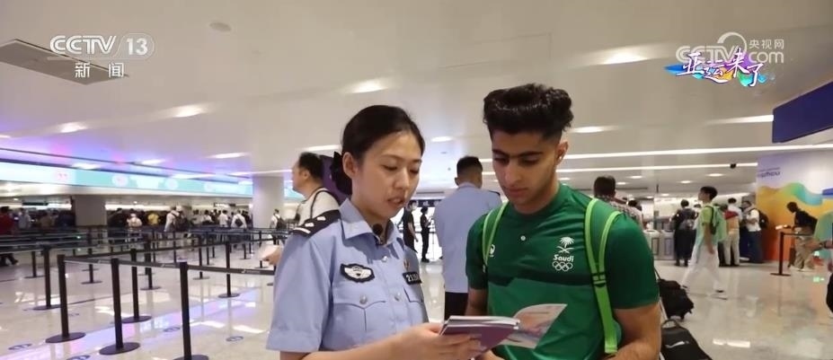 記者看到,在杭州機(jī)場(chǎng)口岸入境現(xiàn)場(chǎng),杭州邊檢站設(shè)置了中英文對(duì)照的亞運(yùn)會(huì)通關(guān)指示標(biāo)識(shí)。配備了具備泰語、韓語、日語、阿拉伯語等多語種能力的檢查員,并在現(xiàn)場(chǎng)向入境的運(yùn)動(dòng)員發(fā)放、介紹亞運(yùn)會(huì)服務(wù)指南。