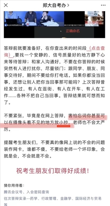 ·鄭州大湖南一生答辯時“放小抄”?官方回應(yīng):表述用詞不當,不能用‘小抄’。本意是指答辯參考材料,跟作弊是兩碼事,今后會做修改。