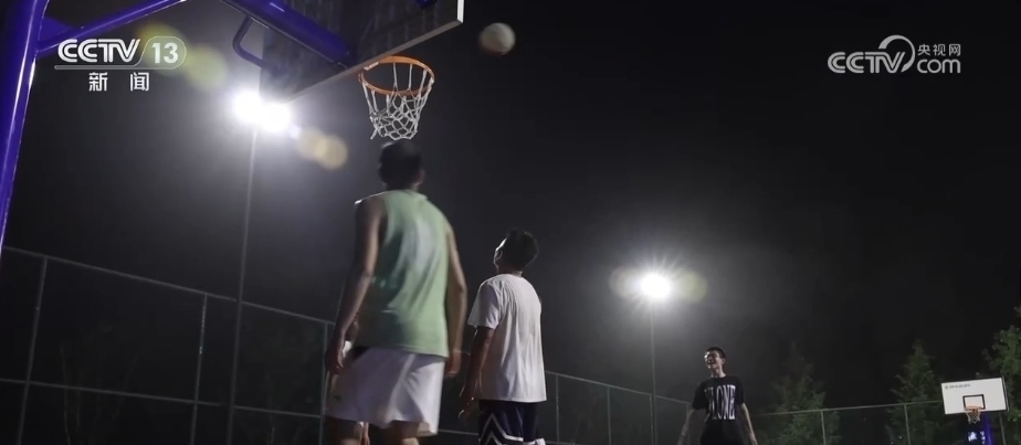 除了足球場,村里還有一塊標準的籃球場。如果天氣好的話,這里幾乎每天晚上都有村民來這兒打球。
