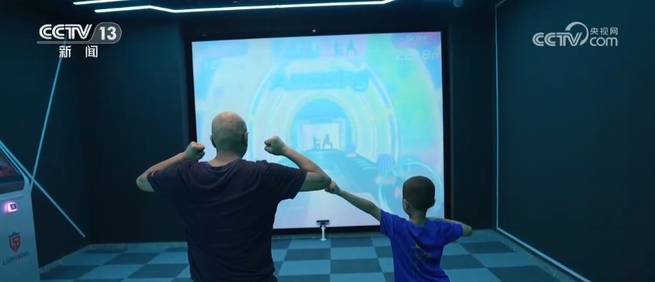 在村里的良渚運動館,大人、孩子沉浸在虛擬世界里體驗滑雪、沖浪、賽車、網球等運動。數字化的運動館已經走進了鄉(xiāng)村,雖然這里剛剛試運行1個月,但是特別受周邊村民的喜歡。最多的一天接待人次達到了800多人次,這個場館點燃了很多人的運動熱情。