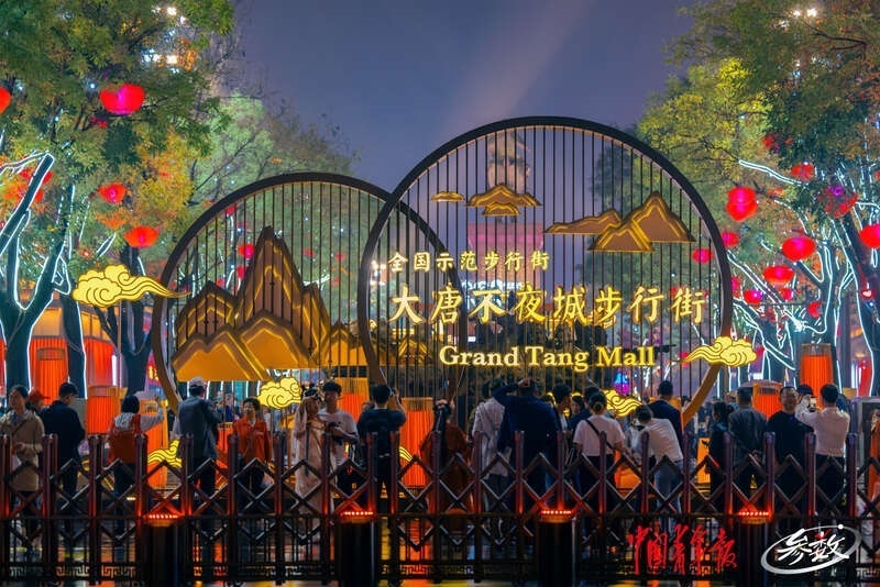 在西安,大唐不夜城步行街華燈初上,人頭攢動。中青在線記者 白楊/攝