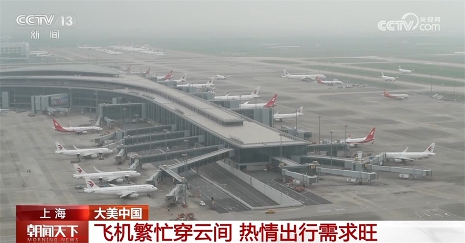 現(xiàn)在您看到的是上海浦東國際機場,每天早上的8點到9點是航班進出港高峰,平均約42秒就有一個航班起降。今年中秋、國慶“雙節(jié)”疊加,出行需求旺盛,8天假期,預(yù)計浦東機場航班量1.1萬架次,客流量158.5萬人次。