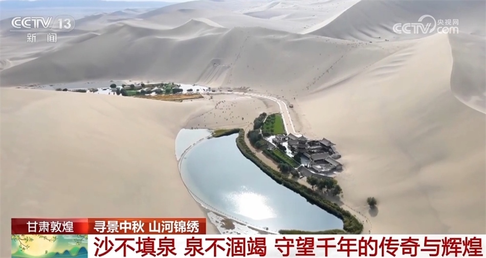 風卷飛沙,月牙泉水卻始終碧波蕩漾,這里是甘肅敦煌。沙不填泉,泉不涸竭,鳴沙山與月牙泉就這樣守望千年,也吸引著世界各地的人們前來領略瀚海風光。今年中秋和國慶假期,景區(qū)游客數量預計突破20萬人次。古道駝鈴,沙漠綠洲,風聲、水聲伴著沙丘移動的聲音,千百年來,大自然一直在用最恢弘的方式訴說著一個天地之間的傳奇與輝煌。