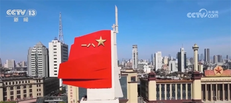 這里是江西省南昌市中心的八一廣場,八一南昌起義紀(jì)念塔巍然矗立,塔頂有一面用棗紅色磨光花崗石做成的八一軍旗,形象地表現(xiàn)南昌起義開始中國共產(chǎn)黨獨(dú)立領(lǐng)導(dǎo)武裝斗爭、人民軍隊(duì)從此光榮誕生這一偉大主題?!澳喜穷^的槍聲”如“劃破夜空的一道閃電”,從此軍旗獵獵向前進(jìn)。