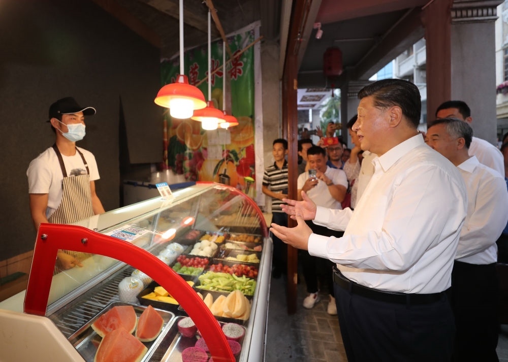 2020年10月13日,習近平在廣東省汕頭市步行察看小公園開埠區(qū)街區(qū)人文歷史風貌時,同現(xiàn)場群眾親切交流。