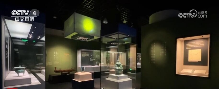 策展人 蔡亭亭:首先重磅的國寶級文物特別多,還有一個亮點(diǎn)是展廳中非常多的文物都體現(xiàn)了長江和海洋文明的互動和交融。