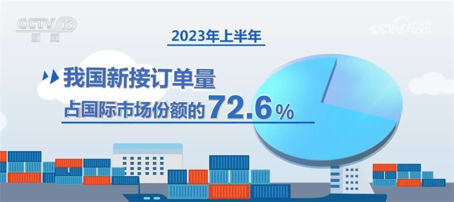 不僅造船業(yè)三大指標繼續(xù)全球領跑,今年上半年,我國新接訂單量更是占國際市場份額的72.6%,這意味著中國造船業(yè)正逐漸在全球市場中掌握主動權。