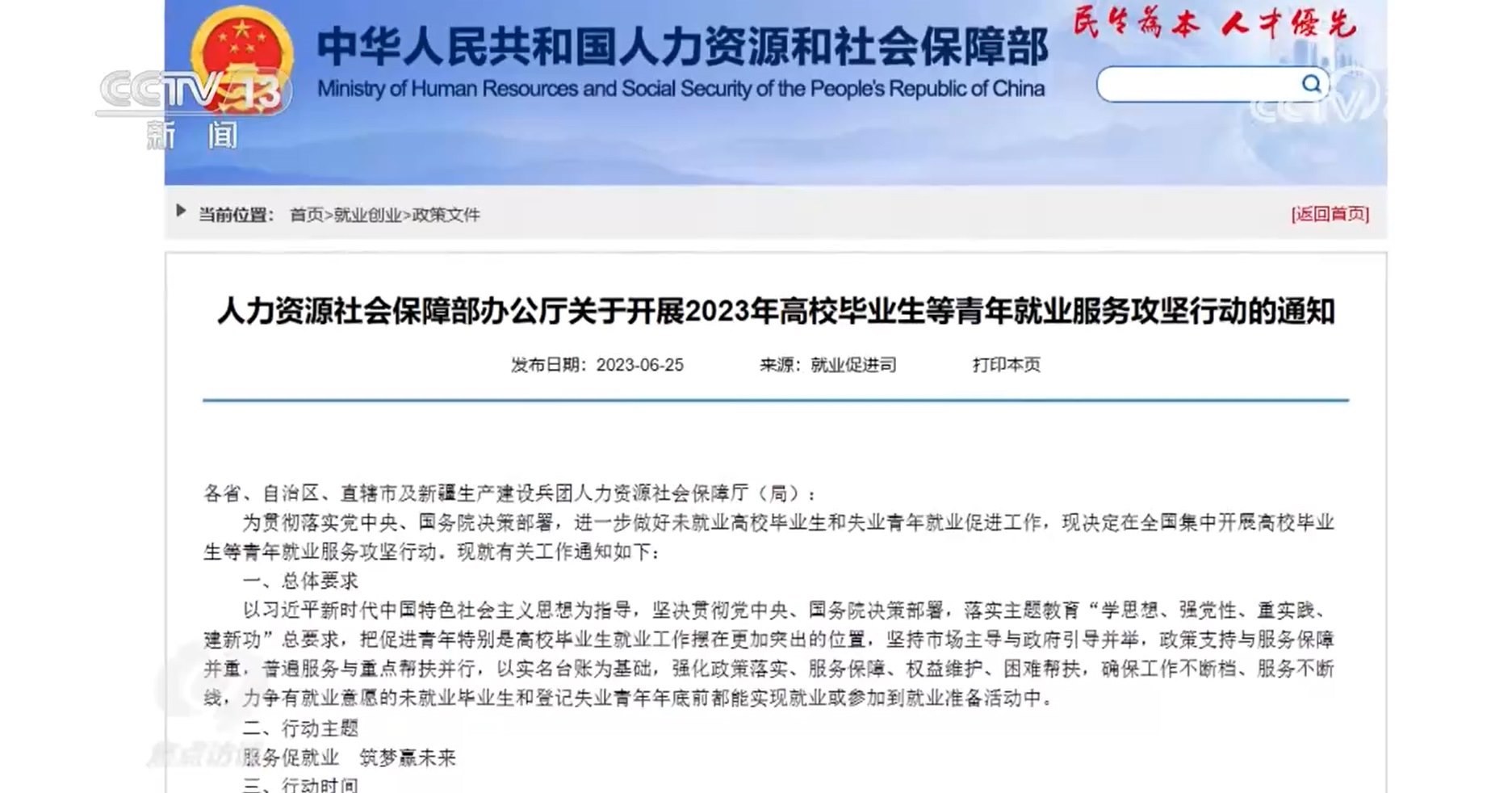 6月25日,人力資源社會保障部印發(fā)通知,部署啟動2023年高校畢業(yè)生等青年就業(yè)服務(wù)攻堅行動,要求省級人力資源社會保障部門7月底前,要建立2023屆未就業(yè)畢業(yè)生實名臺賬。
