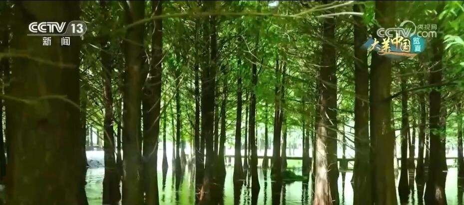 跟隨鏡頭,我們來到江蘇常州新龍生態(tài)林的“水上森林”,滿目蔥蘢、綠意蕩漾。5000多株水杉高大挺拔,陽光從樹林縫隙間灑落,樹下波光粼粼、層層疊疊,置身其中多了分沉靜和清涼。據(jù)了解,新龍生態(tài)林是一處再生水利用工程所在地,自建成運行以來,已累計分流凈化中水約2億噸,為保護(hù)長江常州水源地和節(jié)約城市用水作出貢獻(xiàn)。