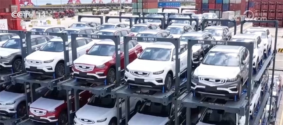 在太倉(cāng)港汽車(chē)出口碼頭,一輛裝載了2797臺(tái)新能源車(chē)的船當(dāng)天將從太倉(cāng)出發(fā)駛往南美。為了滿足新能源車(chē)的運(yùn)輸功能,這艘船做了相應(yīng)改裝。艙內(nèi)配備紅外線溫度成像裝置和新能源車(chē)“一對(duì)一”實(shí)時(shí)溫度監(jiān)控系統(tǒng),一旦溫度過(guò)高就會(huì)開(kāi)啟噴淋裝置。此外,為了滿足傳統(tǒng)汽車(chē)滾裝船運(yùn)力不足的情況,太倉(cāng)港和運(yùn)輸企業(yè)還開(kāi)發(fā)出了用定制集裝箱框裝載汽車(chē),發(fā)揮集裝箱船的運(yùn)力。根據(jù)統(tǒng)計(jì),今年1—6月份,太倉(cāng)港完成整車(chē)出口17萬(wàn)輛,已經(jīng)超過(guò)去年全年的汽車(chē)出口量,其中,新能源車(chē)占比超過(guò)一半。