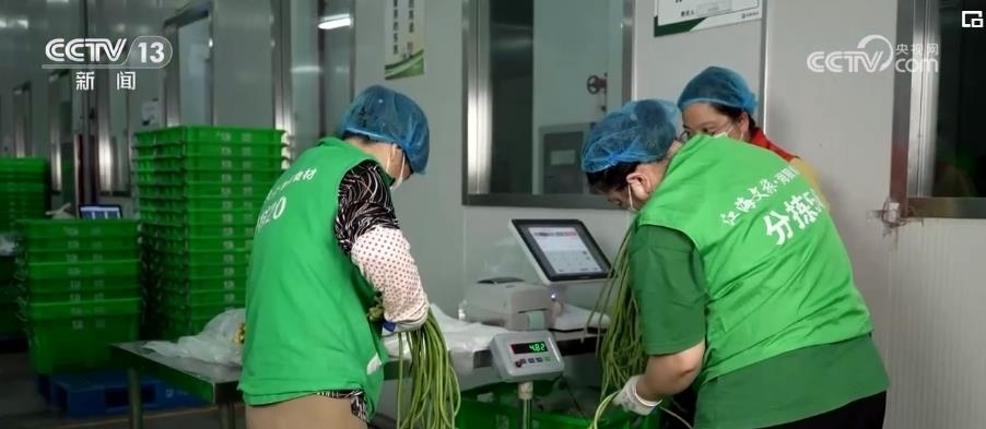 農(nóng)戶增收得益于當(dāng)?shù)匾劳袊Y部門搭建的農(nóng)產(chǎn)品集采平臺。兩年前,錫祥村的農(nóng)產(chǎn)品合作社入選集采平臺,將分散的土地進行科學(xué)、統(tǒng)一規(guī)劃,邀請農(nóng)機部門定期指導(dǎo),嚴把質(zhì)量關(guān),甘藍菜、有機花菜、冬瓜、茄子等當(dāng)季的新鮮綠色蔬菜,每天穩(wěn)定地供應(yīng)到集采平臺的倉儲中心,經(jīng)過質(zhì)檢、簡單加工、凈菜、分包等環(huán)節(jié),再通過冷鏈配送到全區(qū)200多家飯店、商超和食堂。