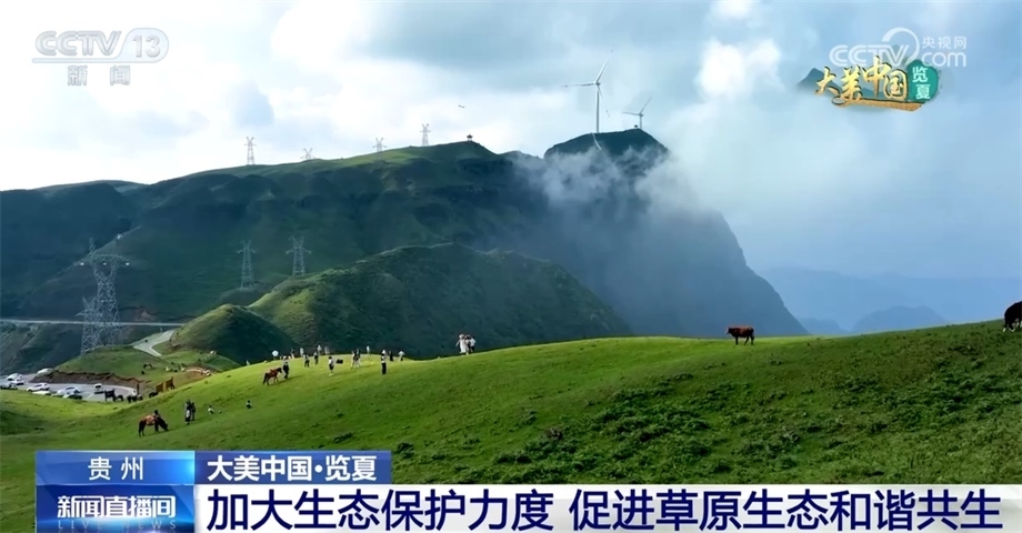跟隨鏡頭,我們來到貴州六盤水盤州市的烏蒙大草原。眼下,正值盛夏的烏蒙大草原水草豐茂、碧綠如茵、牛羊成群,從空中俯瞰,縹緲的云霧將草原裝扮得十分夢幻。烏蒙大草原最高海拔2857米。因為地處高海拔地區(qū),這里的氣候適宜,吸引了許多游客來到這里避暑旅游。近年來,當(dāng)?shù)丶哟髮Υ迕窈陀慰偷男麄饕龑?dǎo)力度,并采取措施限制過度放牧,嚴(yán)厲打擊采挖野生高原矮杜鵑和駕車碾壓草地等行為,保護(hù)草原生態(tài)平衡,維護(hù)生物多樣性,讓烏蒙大草原生態(tài)持續(xù)向好,實現(xiàn)人與自然和諧共生。
