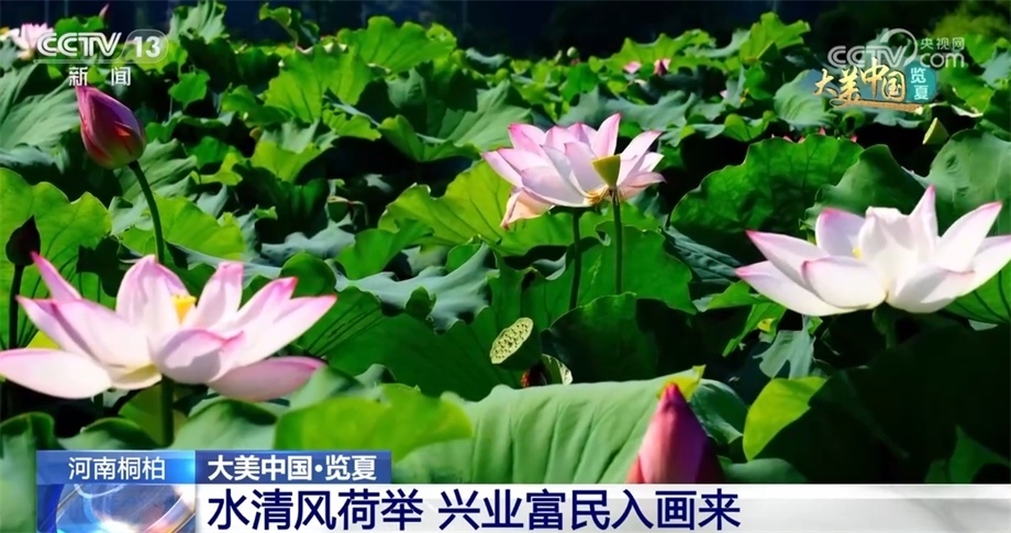 盛夏時(shí)節(jié),河南桐柏縣的兩萬余畝荷田迎來了一年中最美的季節(jié)。從空中俯瞰,藍(lán)天白云之下,青翠的稻田與荷田相映成趣,沿著彎曲的河流交錯(cuò)分布,青山依依、碧水潺潺、煙波浩渺、荷葉田田,美不勝收。一株株荷花裊娜地開著,以粉紅色為主,或鵝黃或潔白,一幅絕美的鄉(xiāng)村生態(tài)畫卷徐徐展開。據(jù)了解,目前桐柏荷花主要有藕蓮、花蓮等多個(gè)品種類群。當(dāng)?shù)卣e極探索農(nóng)旅融合發(fā)展模式,在開展觀光旅游度假的同時(shí),蓮產(chǎn)業(yè)已成為群眾增收的新途徑。