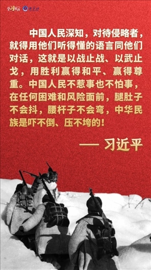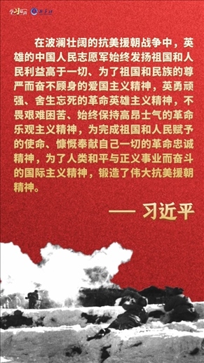 偉大抗美援朝精神跨越時(shí)空、歷久彌新。我們要銘記抗美援朝戰(zhàn)爭的艱辛歷程和偉大勝利,敢于斗爭、善于斗爭,知難而進(jìn)、堅(jiān)韌向前,把新時(shí)代中國特色社會(huì)主義偉大事業(yè)不斷推向前進(jìn)。