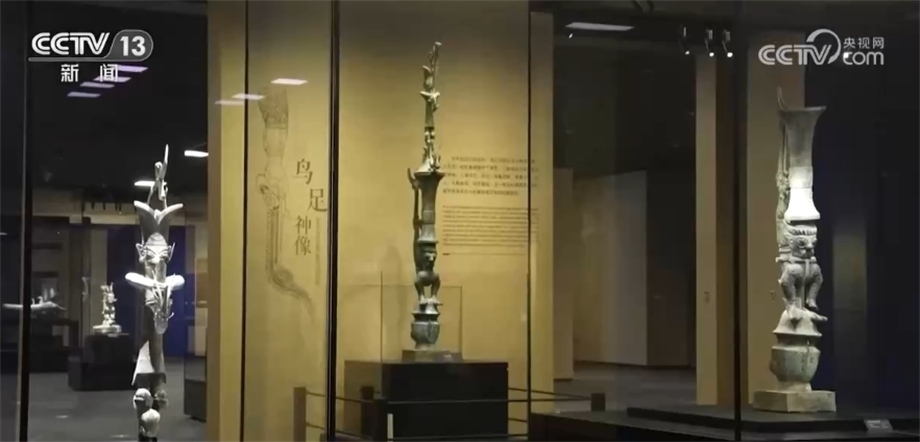 北京大學(xué)考古文博學(xué)院副教授 趙昊:我們意識到它(們)整體是一件器物是一個非常漫長的過程。在1986年的時候,最早發(fā)現(xiàn)的是“鳥足人像”的鳥足部分,在2號坑發(fā)現(xiàn)一件“鳥足人像”,把它放在博物館進(jìn)行展示了,但是實際上當(dāng)時把它放反了,因為所有的人都沒有理解它應(yīng)該是一個從天而降倒立的姿態(tài)。后來是在我們2021年—2022年新的發(fā)掘中有了新發(fā)現(xiàn),而且實際上我們現(xiàn)在看到的這幾件器物并不是在同一個坑內(nèi)發(fā)現(xiàn)的,恰恰發(fā)現(xiàn)之后,我們通過很長時間的拼對和比對才意識到它有可能是同一件器物。