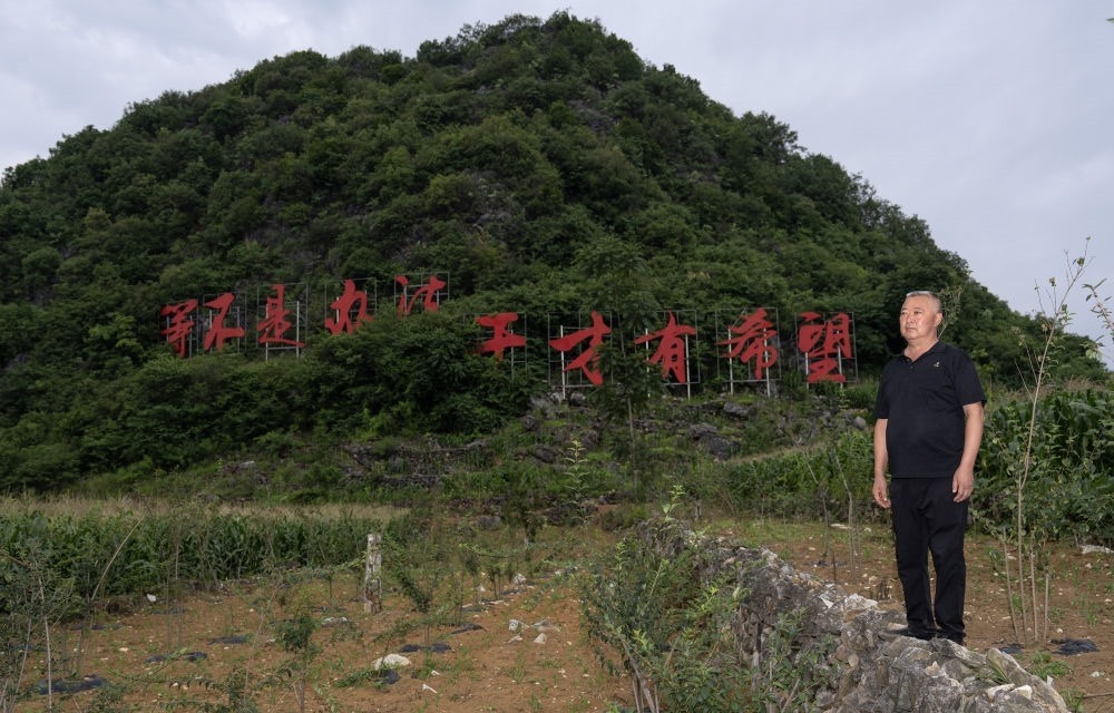 就在劉文政和伙伴們?cè)谏蕉亲永飱^力掘進(jìn)的時(shí)候,20多歲的木者村村支書劉登榮,也放響了改造石漠化土地的“第一炮”。