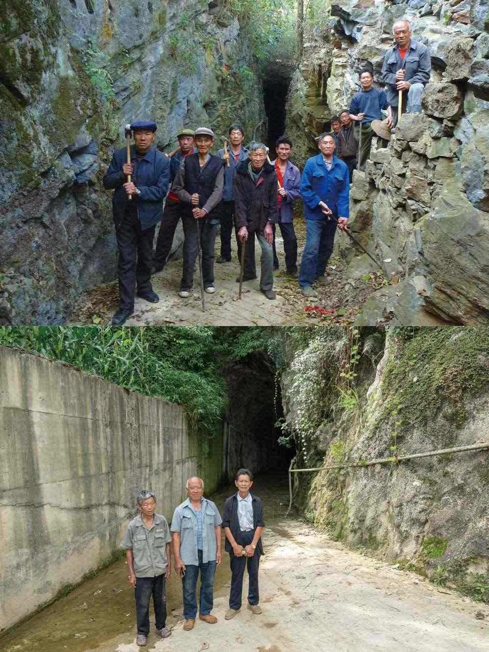 這首生命樂(lè)章的序曲是“人定勝天”:劉家塘村四面環(huán)山,地勢(shì)低洼,多雨季節(jié)洪水泛濫,田地絕收。1962年,村黨支部決定開(kāi)鑿隧洞。隨后,村民開(kāi)始了“驚人之舉”——全村男女老少齊上陣,以鐵錘、鋼釬為主要工具,歷時(shí)近半個(gè)世紀(jì),鑿?fù)烁?.5米、寬1.5米,全長(zhǎng)300米的穿山隧洞,徹底解決了水患。后來(lái),這個(gè)隧洞被命名為“勝天洞”。