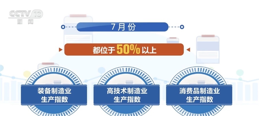 ?????? 國家統(tǒng)計局服務業(yè)調(diào)查中心二級巡視員 史朝暉:從具體的行業(yè)表現(xiàn)情況來看,7月份的石油煤炭加工、化學纖維及橡膠塑料制品,還有專用設備,鐵路、船舶、航空航天設備以及計算機通信電子設備,這些行業(yè)的生產(chǎn)指數(shù)和新訂單指數(shù)都是高于臨界點的,表明這些行業(yè)的產(chǎn)需兩端同步擴張。