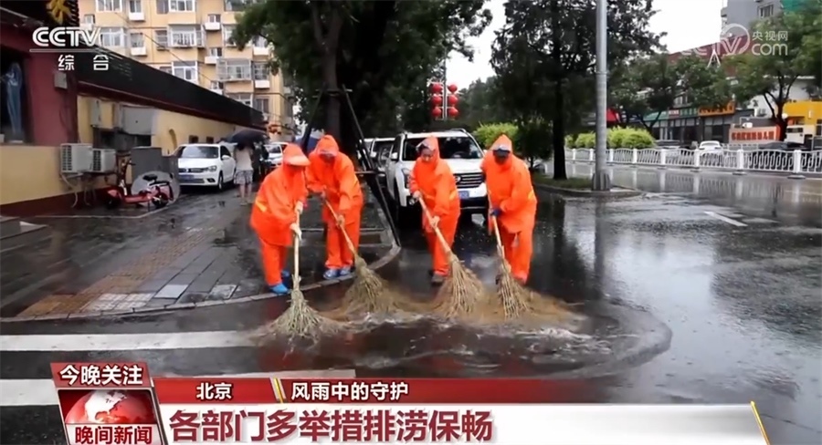 為應對今年以來北京最強降雨天氣,在順義,巡查人員雨中對管養(yǎng)范圍內積水點、路樹、橋梁等重點部位不間斷巡視;昌平公路分局在山區(qū)公路地質災害易發(fā)路段設置值守點;懷柔區(qū)環(huán)衛(wèi)公司緊急成立防汛應急小組,對道路積水開展人工推水作業(yè),撿拾雨箅子上的雜物和樹葉,方便市民出行。
