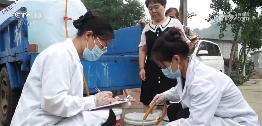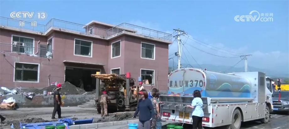 在北京市房山區(qū)西班各莊村,由于洪水侵襲,當(dāng)?shù)厮淳粵_毀,230戶村民出現(xiàn)飲水困難。當(dāng)?shù)厮块T立即派出應(yīng)急送水車,同時集結(jié)勘探隊、機械設(shè)備,用最快的速度更新水源。?