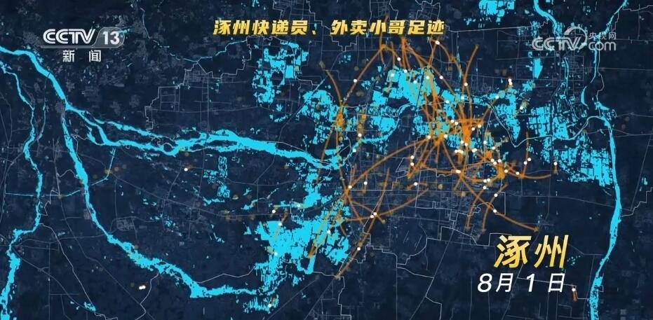 8月1日到8月2日,幾乎在24小時內(nèi),涿州小城就增加了近1.7萬個外地手機信令,尤其有將近1萬人從外省趕到涿州,我們從新聞中看到了來自各地的救援“逆行者”,爭分奪秒地向受災(zāi)最嚴(yán)重的地方挺進(jìn)。