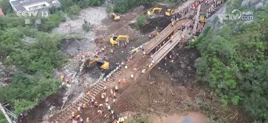 國鐵北京局持續(xù)組織2000余名搶險人員,48臺大型搶險設(shè)備在豐沙線水毀現(xiàn)場搶險。截至目前,沙城至北京方向,上行線已經(jīng)搶通至沿河城站,下行線已經(jīng)搶通至沿河城至舊莊窩站間。北京至沙城方向,上行線已搶通至雁翅至珠窩站間,下行線已搶通至斜河澗站。