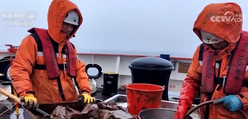 中國(guó)第13次北冰洋科學(xué)考察隊(duì)隊(duì)員 劉坤:大概兩個(gè)小時(shí)吧。冷,海水比較冷,上來(lái)之后在兩(攝氏)度左右,泥的溫度也差不多在兩(攝氏)度。