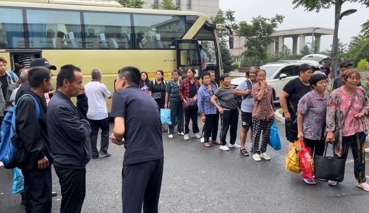 “不著急,慢點(diǎn)兒下,咱這兒有住的、有吃的。”來自五常市民樂鄉(xiāng)的群眾陸續(xù)走下大巴車,已有工作人員等在車前。