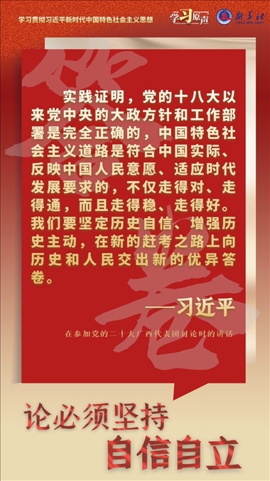 中國(guó)人民和中華民族從近代以后的深重苦難走向偉大復(fù)興的光明前景,從來(lái)就沒有教科書,更沒有現(xiàn)成答案。黨的百年奮斗成功道路是黨領(lǐng)導(dǎo)人民獨(dú)立自主探索開辟出來(lái)的,馬克思主義的中國(guó)篇章是中國(guó)共產(chǎn)黨人依靠自身力量實(shí)踐出來(lái)的,貫穿其中的一個(gè)基本點(diǎn)就是中國(guó)的問題必須從中國(guó)基本國(guó)情出發(fā),由中國(guó)人自己來(lái)解答。我們要堅(jiān)持對(duì)馬克思主義的堅(jiān)定信仰、對(duì)中國(guó)特色社會(huì)主義的堅(jiān)定信念,堅(jiān)定道路自信、理論自信、制度自信、文化自信,以更加積極的歷史擔(dān)當(dāng)和創(chuàng)造精神為發(fā)展馬克思主義作出新的貢獻(xiàn),既不能刻舟求劍、封閉僵化,也不能照抄照搬、食洋不化。