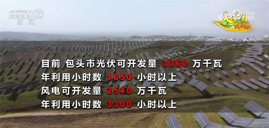 像王武這樣的光伏電站,包頭市有幾十家。目前,當(dāng)?shù)毓夥砷_發(fā)量3060萬千瓦,年利用小時(shí)數(shù)1650小時(shí)以上;風(fēng)電可開發(fā)量2540萬千瓦,年利用小時(shí)數(shù)3300小時(shí)以上。