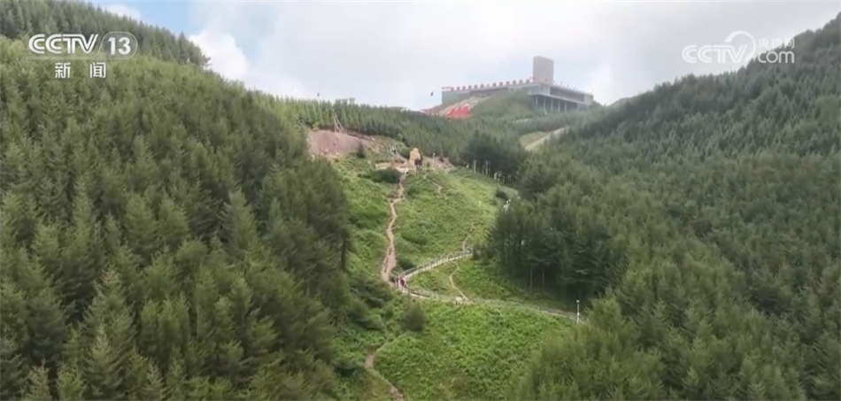 總臺(tái)記者 許國(guó)飛:從六盤山的腳下要想去往山頂?shù)募o(jì)念館,一共有兩種方式,第一種方式是乘坐擺渡車上去,第二種方式就是從我腳下的這條“紅軍小道”步行上去,這條小道長(zhǎng)度一共是2.5公里,有65%以上的游客選擇了步行上去。