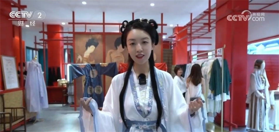 總臺(tái)央視記者 劉藝涵:沉浸式古鎮(zhèn)之旅一定少不了換裝體驗(yàn),也是不少游客來到這里首選的項(xiàng)目。目前,園區(qū)內(nèi)像這樣的古裝店共有7家,提供租賃、銷售、化妝造型和攝影等服務(wù)?,F(xiàn)在我身上的這件就是店里的一款經(jīng)典的漢服,全天的租賃價(jià)格是199元。