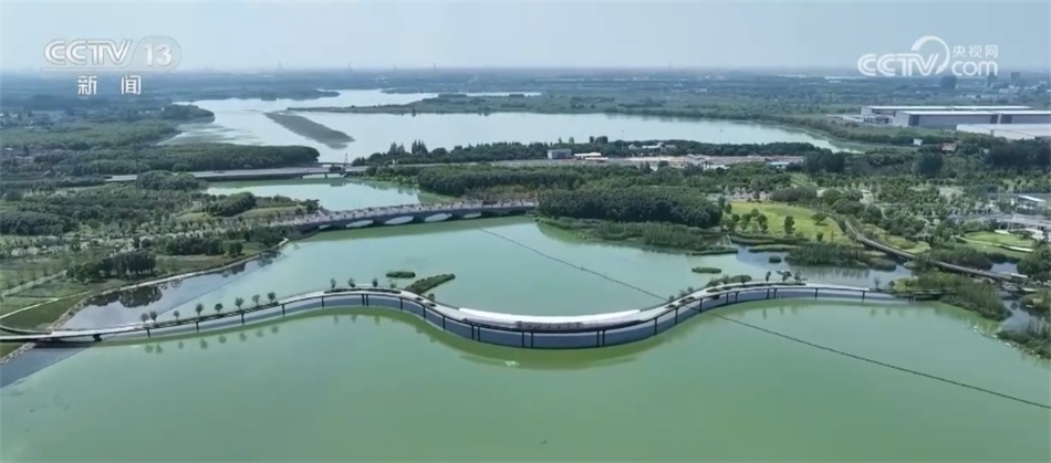 總臺記者 毛?。?/strong>這里是蘇州吳江和上海青浦交界處的元蕩湖,我所走的這座步行橋總長585米,這也是遠(yuǎn)近聞名網(wǎng)紅打卡地。除了風(fēng)景美麗之外,還有一個原因。我現(xiàn)在還是在上海,往前走兩步,走過這行字,我就到了蘇州,完全沒有兩個城市之間的陌生感。這座步行景觀橋也是長三角生態(tài)綠色一體化發(fā)展示范區(qū)建設(shè)的第一座跨省級行政區(qū)的步道橋。在旁邊,還有連接上海、蘇州兩地的公路橋和滬蘇湖鐵路橋也都建設(shè)好了,城市之間的交流越來越緊密。
