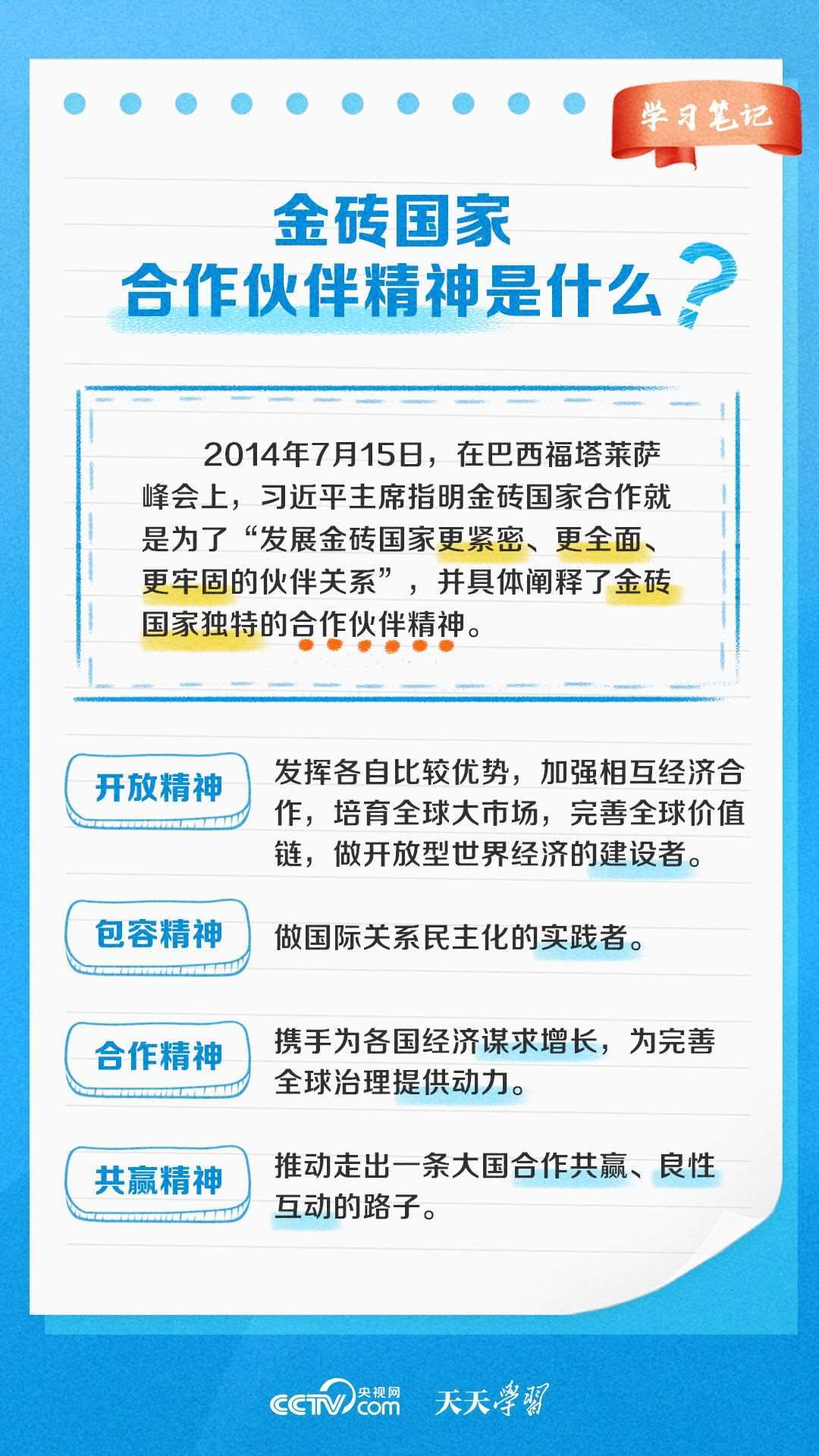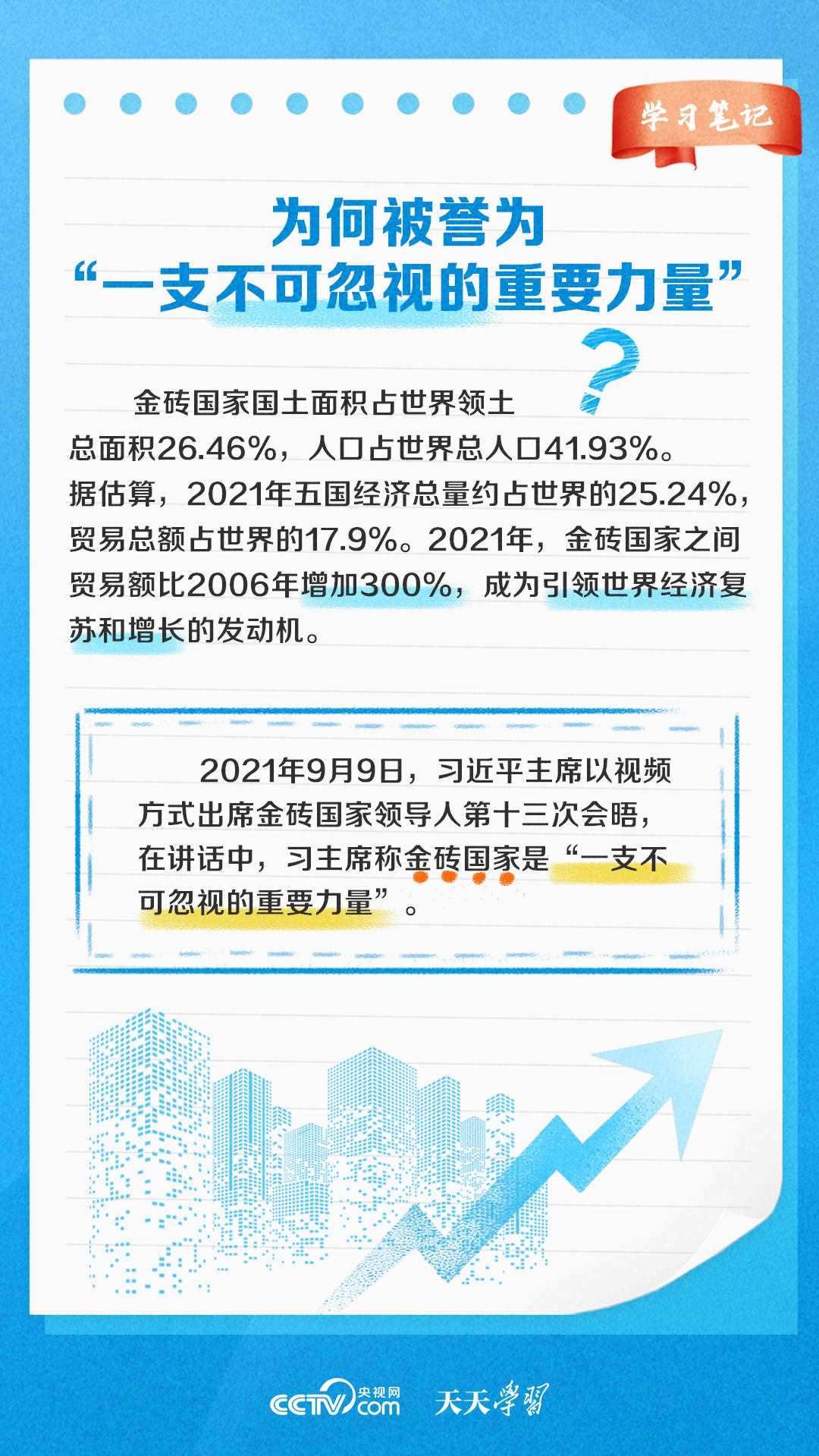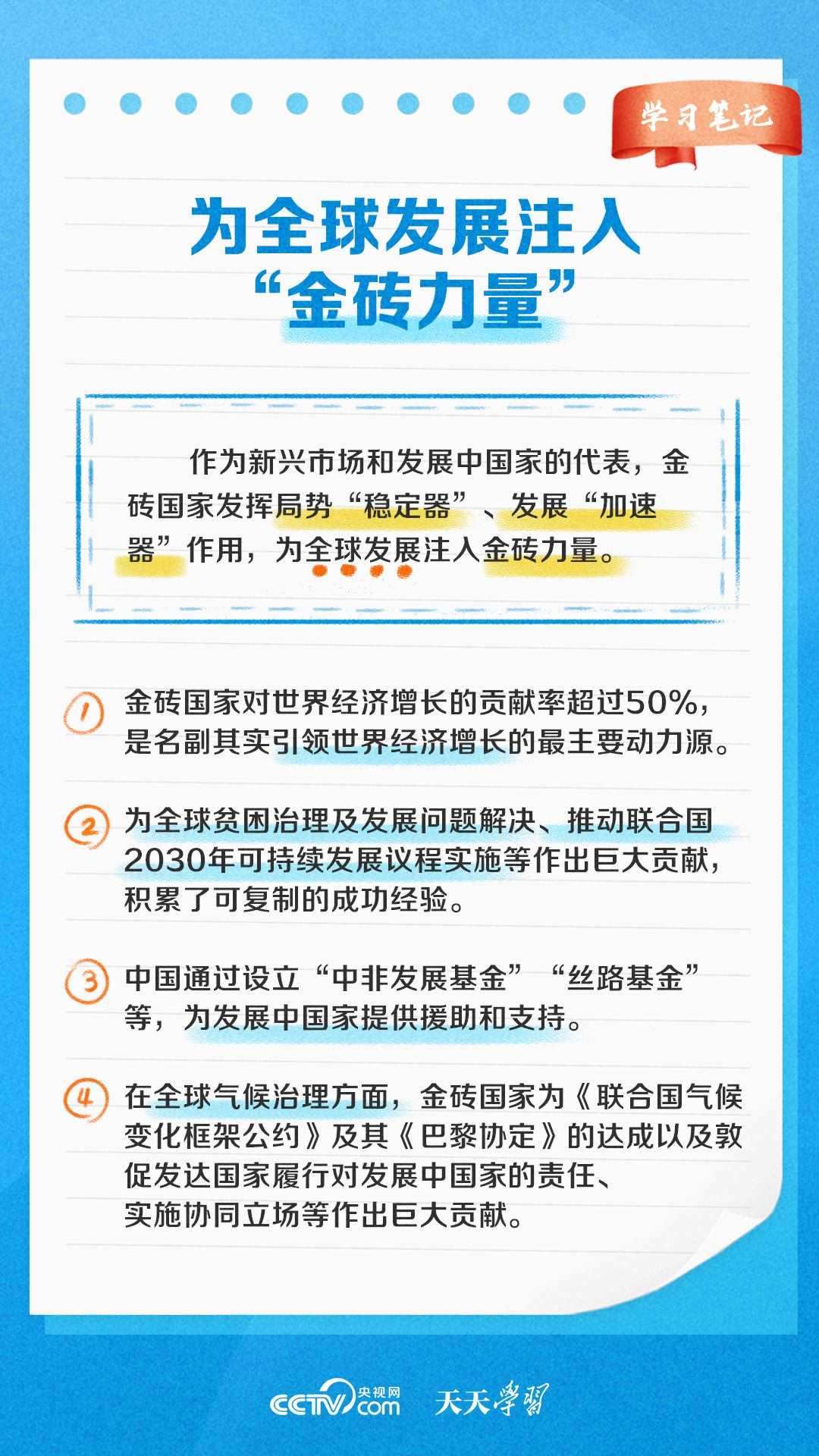 自金磚國(guó)家合作機(jī)制建立以來(lái),金磚國(guó)家合作不斷走深走實(shí),成為帶動(dòng)世界經(jīng)濟(jì)增長(zhǎng)、完善全球經(jīng)濟(jì)治理、推動(dòng)國(guó)際關(guān)系民主化的重要力量之一。《天天學(xué)習(xí)》特推出《學(xué)習(xí)筆記》,與您一起了解金磚國(guó)家合作機(jī)制緣何擁有強(qiáng)勁生命力。