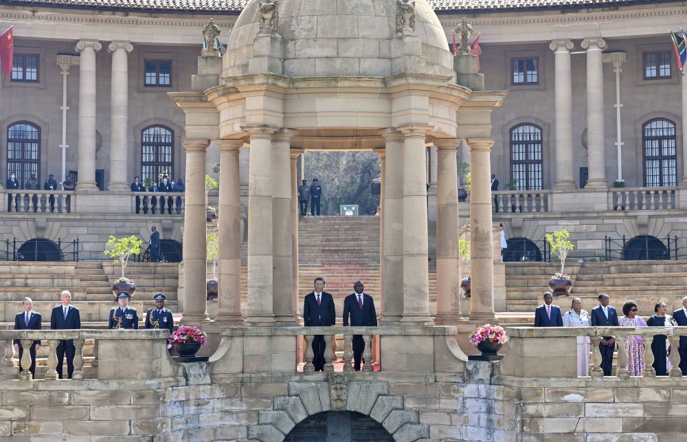 會談前,拉馬福薩在總統(tǒng)府廣場為習近平舉行歡迎儀式。