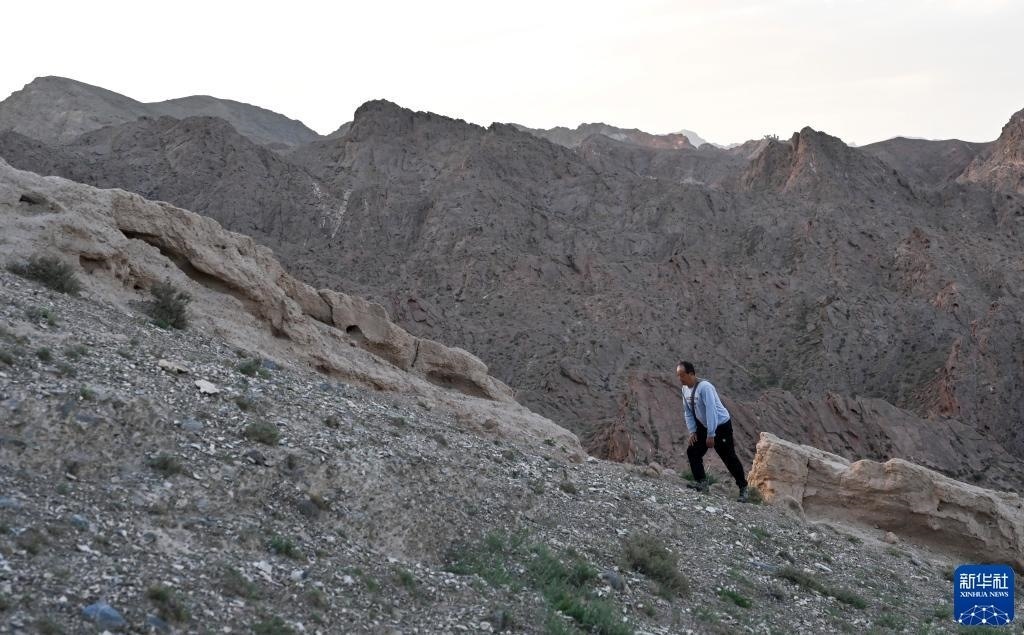 8月20日,董海寧徒步巡查賀蘭山沿線(xiàn)的明長(zhǎng)城永寧段。新華社記者 馮開(kāi)華 攝