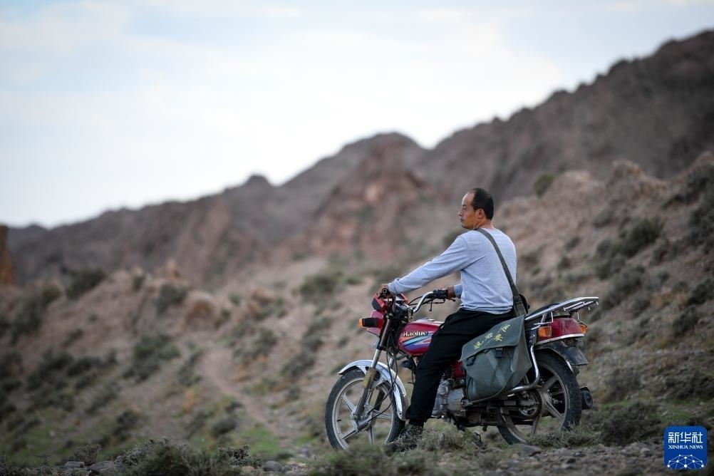 8月20日,董海寧騎摩托車(chē)巡查賀蘭山沿線(xiàn)的明長(zhǎng)城永寧段。新華社記者 馮開(kāi)華 攝