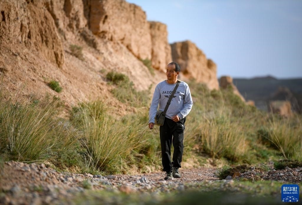 今年42歲的董海寧,從小在長(zhǎng)城腳下長(zhǎng)大。2016年,董海寧被聘為寧夏永寧縣長(zhǎng)城保護(hù)員,兩年后又被聘為內(nèi)蒙古阿拉善左旗的長(zhǎng)城保護(hù)員。