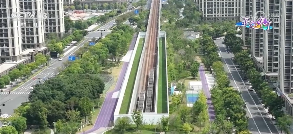 來(lái)到杭州臨平區(qū)的豐彩運(yùn)動(dòng)公園,公園形似一個(gè)“彩虹大吉他”,穿梭其間的地鐵宛若“琴弦”撥動(dòng)。