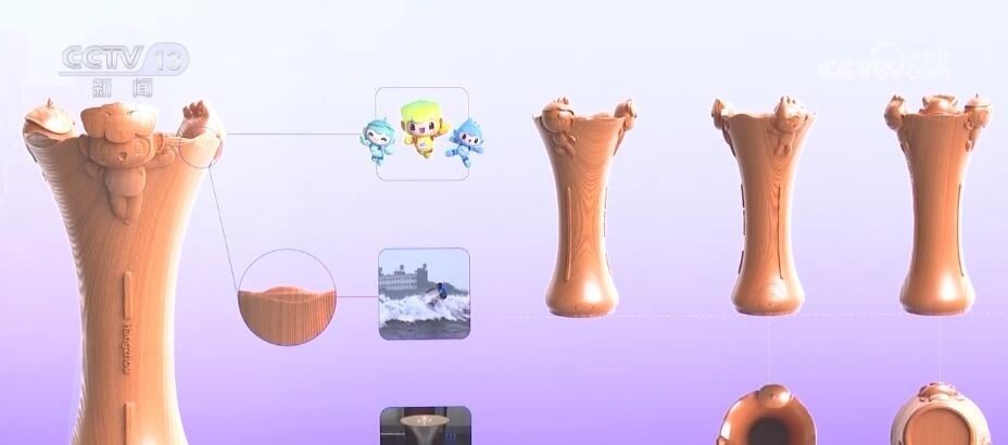 頒獎(jiǎng)托盤設(shè)計(jì)靈感則來源于微風(fēng)中波動(dòng)的西湖水面,結(jié)合本屆亞運(yùn)會核心圖形“潤澤”中的飄逸絲帶意向,整體給人流動(dòng)之感。