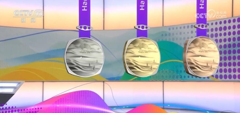 杭州亞運(yùn)會獎(jiǎng)牌名為“湖山”。“湖山”將良渚文化的方形玉琮和圓形的獎(jiǎng)?wù)氯跒橐惑w,正面用凸出的線條勾勒出“三面云山一面城”的杭城畫卷,湖水漣漪,山巒起伏。獎(jiǎng)牌上方的束扣是一個(gè)帶有倒影的三孔橋,設(shè)計(jì)取自京杭大運(yùn)河最南端的拱宸橋。一塊獎(jiǎng)牌,將杭州的三處世界文化遺產(chǎn)——良渚、西湖、大運(yùn)河都融入其中。