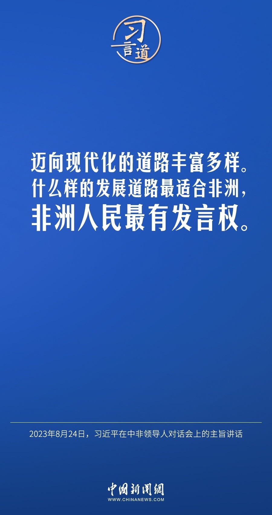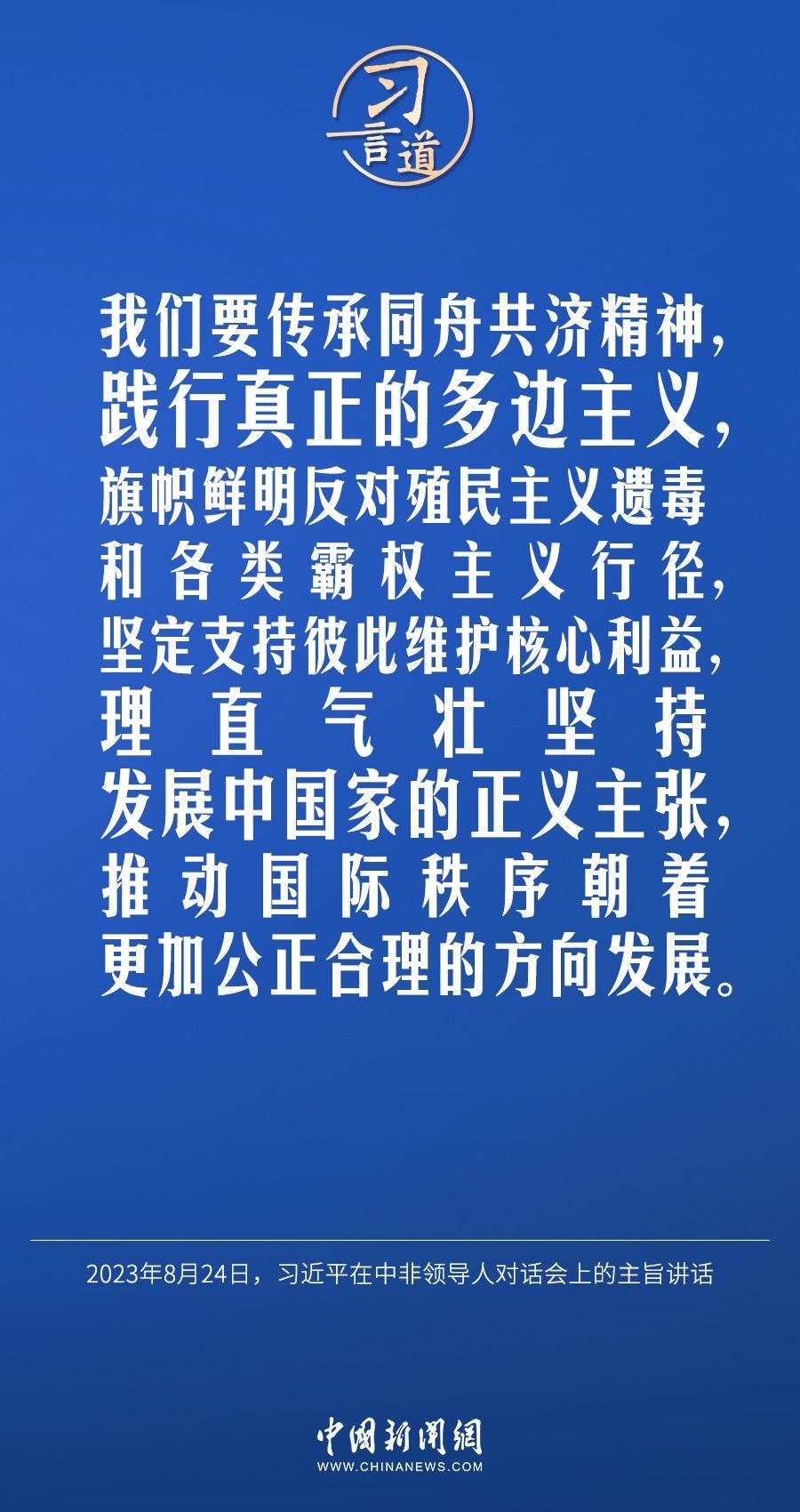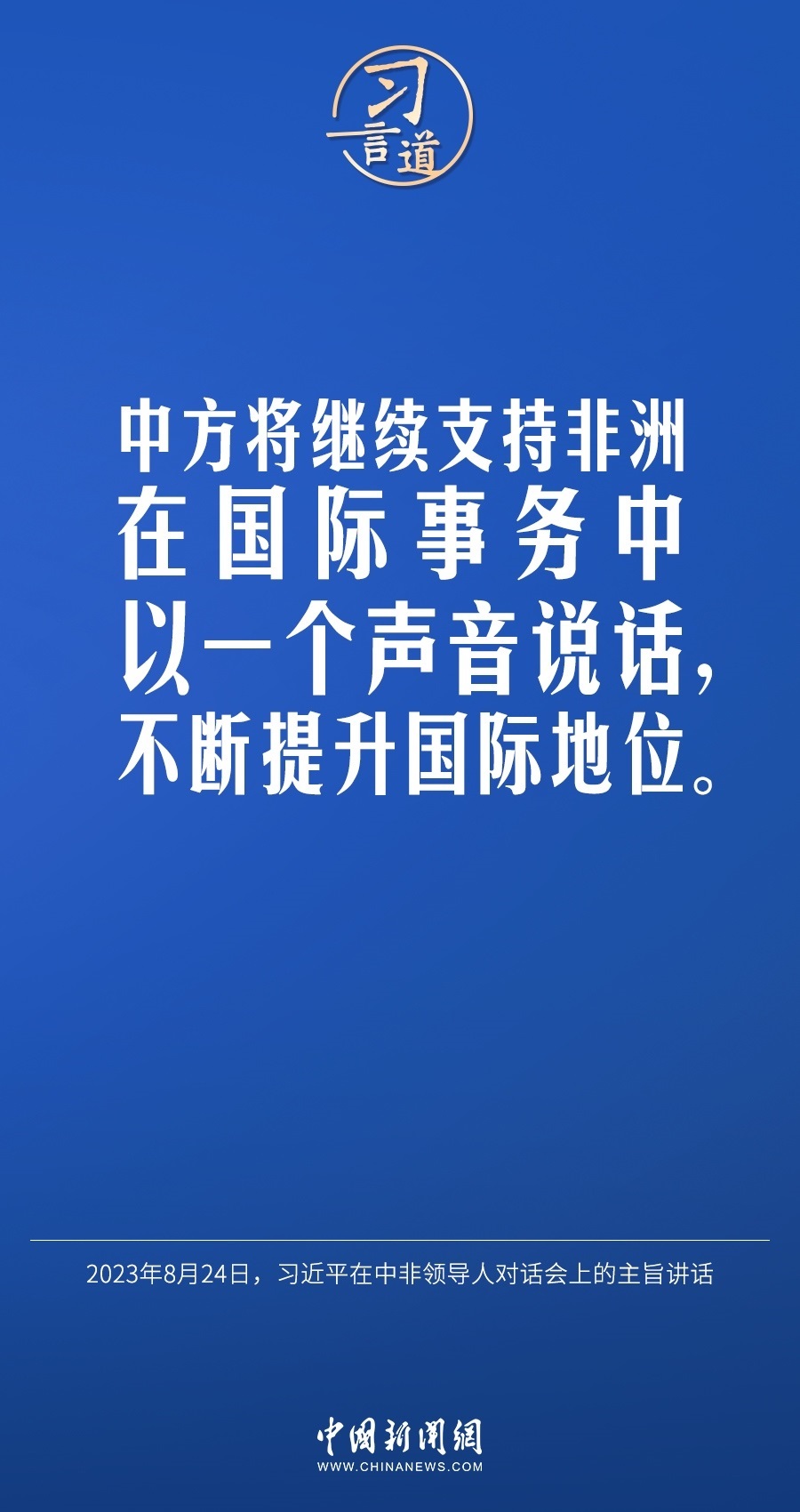 當(dāng)?shù)貢r間8月24日晚,國家主席習(xí)近平和南非總統(tǒng)拉馬福薩在約翰內(nèi)斯堡共同主持中非領(lǐng)導(dǎo)人對話會。習(xí)近平發(fā)表題為《攜手推進(jìn)現(xiàn)代化事業(yè) 共創(chuàng)中非美好未來》的主旨講話。習(xí)近平指出——