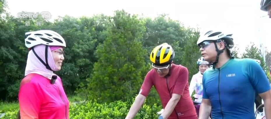 河北定州騎行愛(ài)好者 楊建茹:陸陸續(xù)續(xù)買(mǎi)的這衣服,我最喜歡就是這幾種牛奶絲的,透氣的,網(wǎng)眼的,穿起來(lái)特別舒服,還配著衣服買(mǎi)的面巾,五顏六色的面巾特別漂亮。