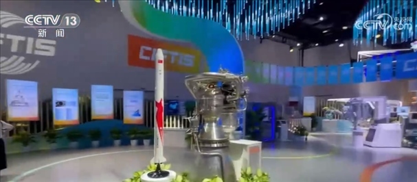 總臺記者 王豐:這片區(qū)域是綜合展的一個成就展的專題,這里集中展示了我國在服務(wù)業(yè)擴大開放和服務(wù)貿(mào)易創(chuàng)新發(fā)展方面所取得的一系列成就。比如說這個,這是我國民營企業(yè)藍(lán)箭航天自主研發(fā)的朱雀二號火箭,旁邊是自主研發(fā)的天鵲發(fā)動機。今年7月12日,朱雀二號成功發(fā)射升空,是世界上首款將載荷送入預(yù)定軌道的液氧甲烷火箭。