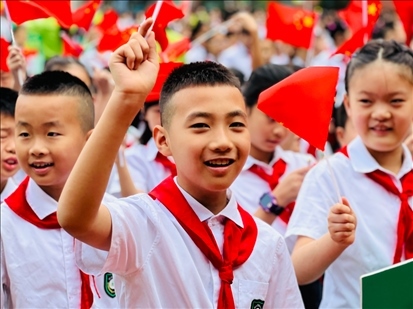 重慶樹(shù)人景瑞小學(xué)的孩子們參加以愛(ài)國(guó)為主題的“開(kāi)學(xué)第一課”。(重慶樹(shù)人景瑞小學(xué)供圖)