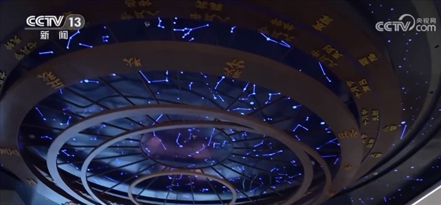 總臺記者 孫銳:一走進浙江省非物質文化遺產(chǎn)館,我們就能看到,在天花板上懸掛著這樣一個特殊的大鐘表。它是以北斗星為指針,以24節(jié)氣為刻度。同時,在地上還投影有當下的節(jié)氣,比如說現(xiàn)在顯示的就是剛剛過去的處暑節(jié)氣。二十四節(jié)氣項目也是人類非物質文化遺產(chǎn),它指引著我們按照時令來賞景、品美食?,F(xiàn)在我們就從這個節(jié)氣裝置出發(fā),一起走進非遺館里的“中國時間”。
