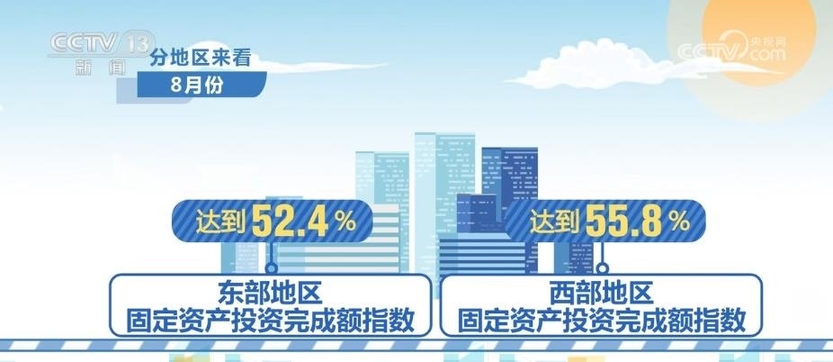 8月份,固定資產(chǎn)投資完成額指數(shù)為50.6%,2023年2月份以來(lái)一直呈擴(kuò)張態(tài)勢(shì)。分地區(qū)來(lái)看,8月份,東部和西部地區(qū)固定資產(chǎn)投資完成額指數(shù)分別達(dá)到52.4%和55.8%。